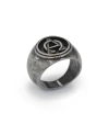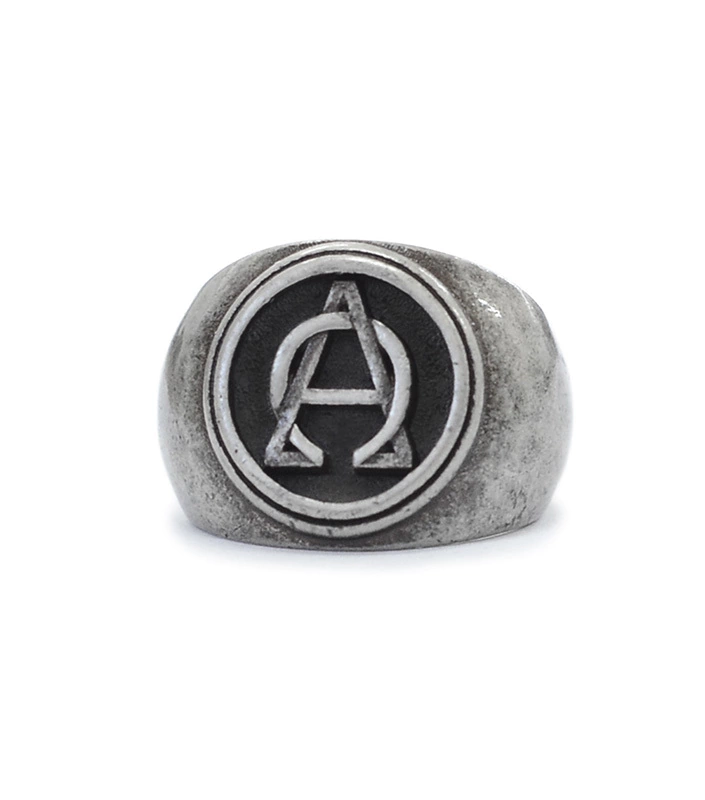 Criado para a coleção The End, o anel com as letras Alpha e Ômega - respectivamente a primeira e ultima letras do alfabeto grego, vem carregado de simbolismos. Seja o início e o fim de todas as coisas ou das fases que vivemos na nossa existência. Neste Anel Sinete (ou selo, usado para selar cartas e documentos antigamente) as duas letras entrelaçadas formam um símbolo só, nos remetendo ao nosso passado e futuro, e nos lembrando de viver o presente.