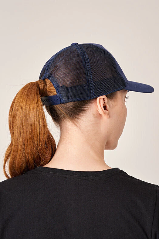 Um boné de cinco gomos, feito de sarja em algodão, que oferece conforto e estilo. O boné é tinturado (lavado), o que dá um aspecto vintage e despojado. A aba curva protege o rosto do sol e o fechamento com fivela de metal permite ajustar o tamanho.