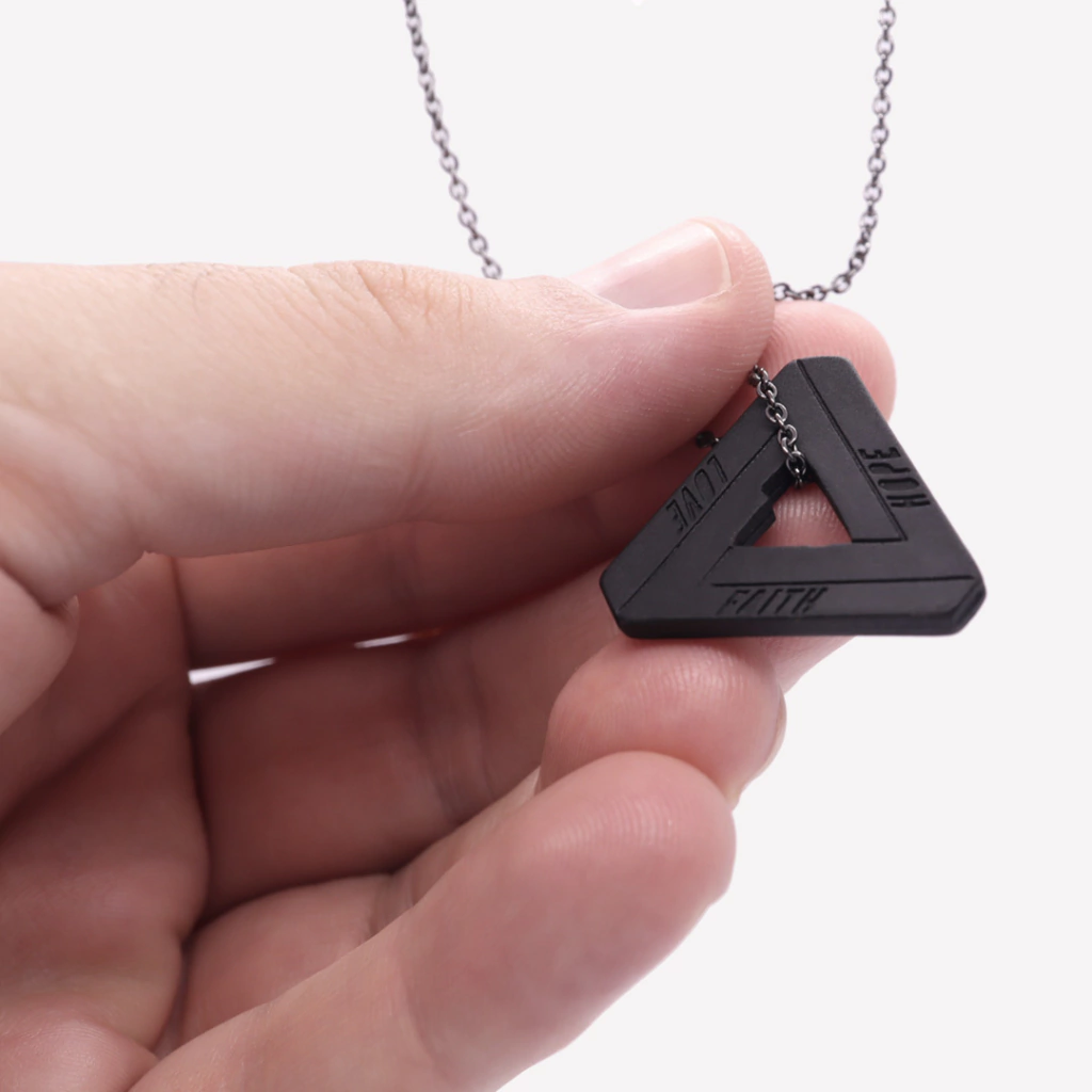 O triângulo impossível pode ser representado visualmente, mas tecnicamente impossível de ser transformada em um objeto concreto. Assim são a fé, esperança e o amor, conceitos não palpáveis mas reais, que podemos experienciar além daquilo que é tangível.